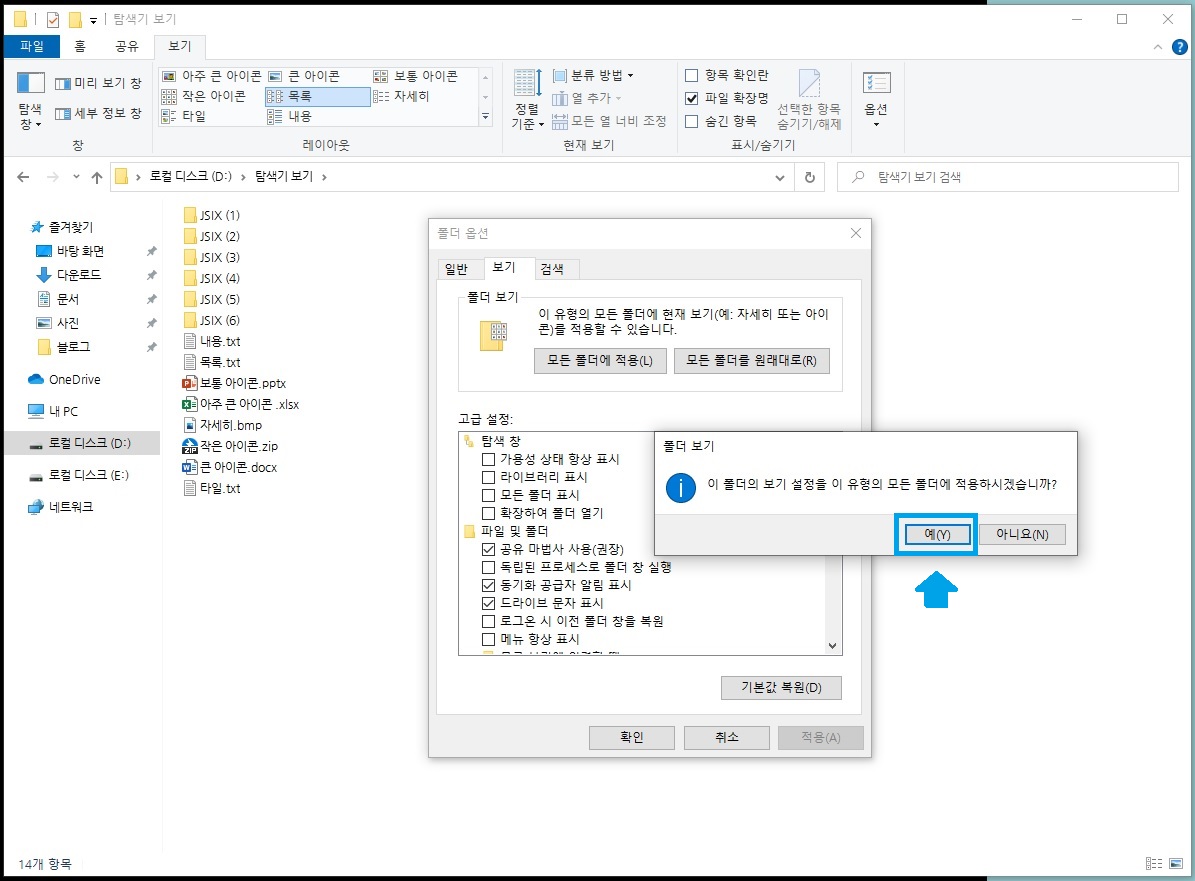 <예>를 클릭하면 지금 보고 있는 폴더의 보기 형식이 모든 폴더에 적용됩니다.