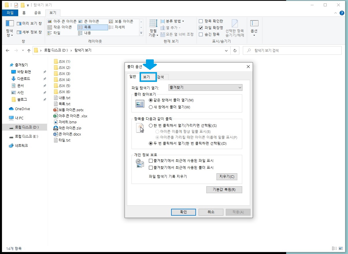 윈도우10 탐색기 보기 설정 모든 폴더에 적용하는 방법